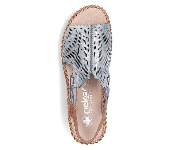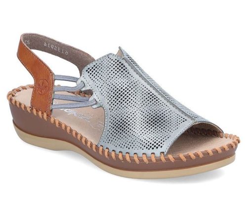 Kék színű Rieker 61359-14 női szandál. Felsőrészének az anyaga: bőr felső