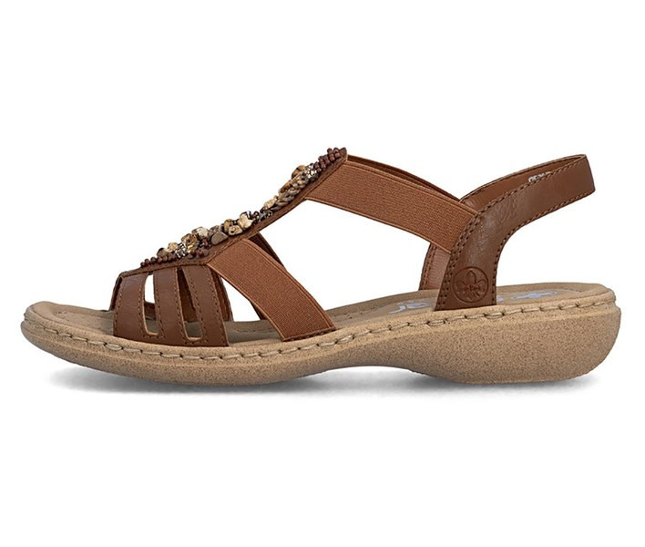 Barna színű Rieker 61850-24 női szandál. Felsőrészének az anyaga: Ekológikus bőr felső