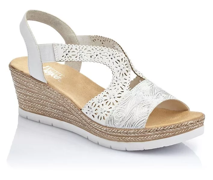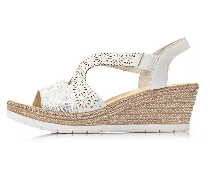 Fehér színű Rieker 61916-80 női szandál. Felsőrészének az anyaga:
