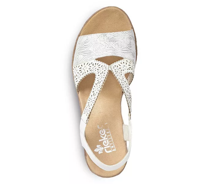 Fehér színű Rieker 61916-80 női szandál. Felsőrészének az anyaga: