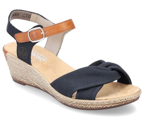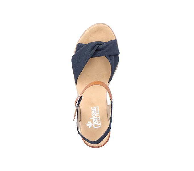 Kék színű Rieker 62490-14 női szandál. Felsőrészének az anyaga: Textil felső