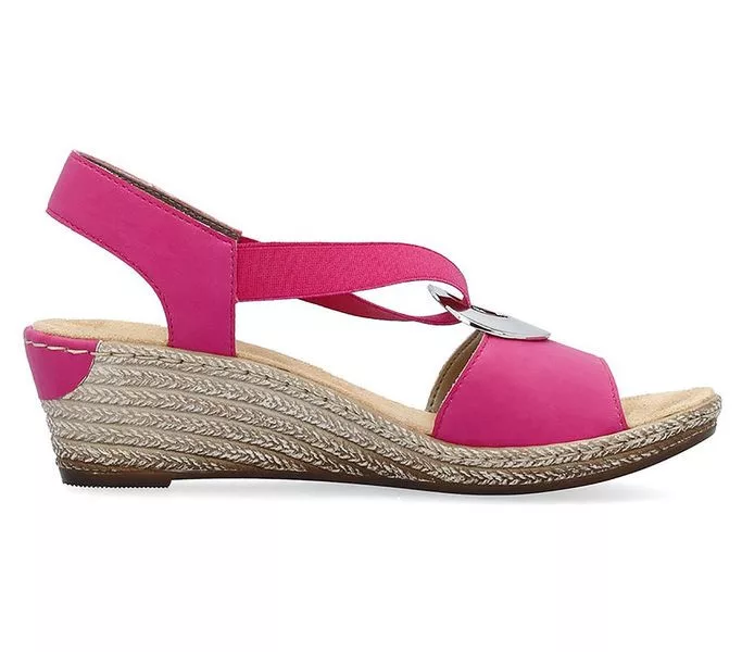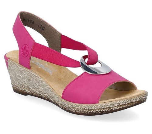 Rózsaszín színű Rieker 624H6-32 női szandál. Felsőrészének az anyaga: műbőr felső