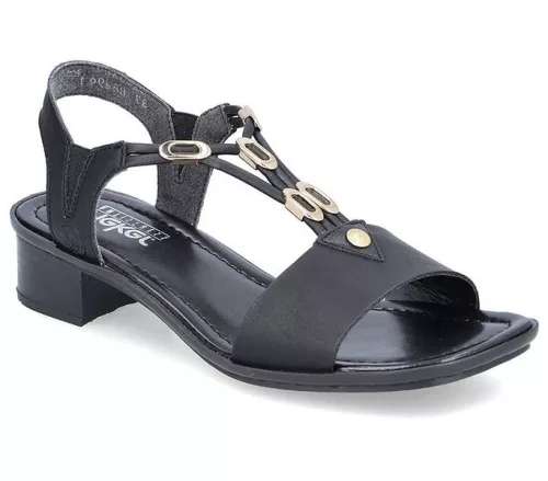 Fekete színű Rieker 62653-00 női szandál. Felsőrészének az anyaga: műbőr felső