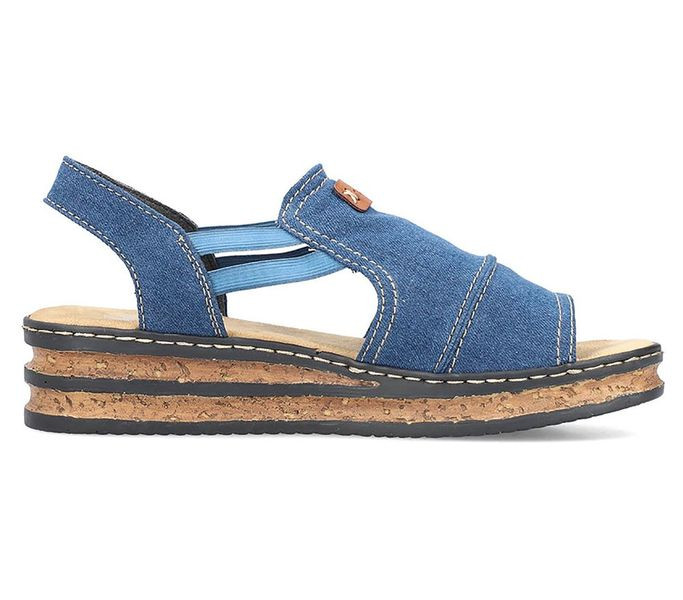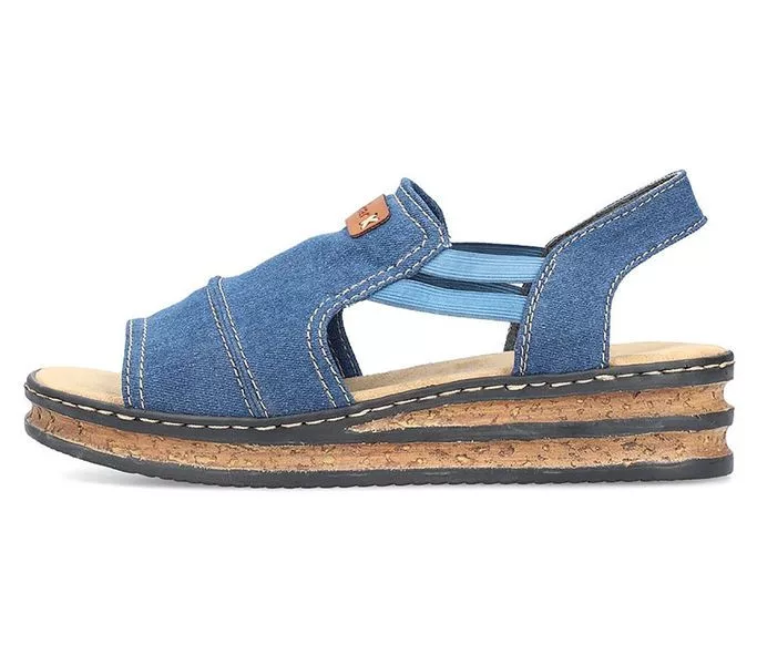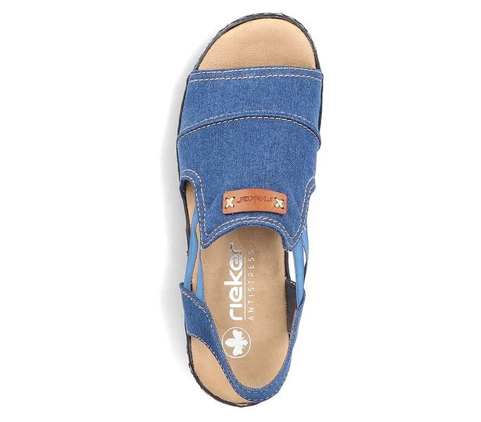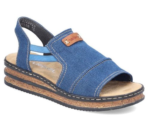 Kék színű Rieker 62982-12 női szandál. Felsőrészének az anyaga: Textil felső