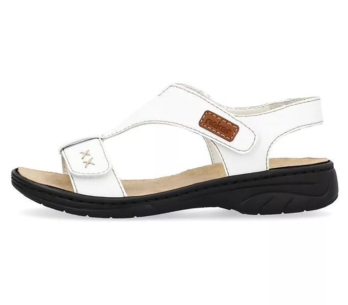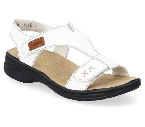 Fehér színű Rieker 64577-80 női szandál. Felsőrészének az anyaga: bőr felső