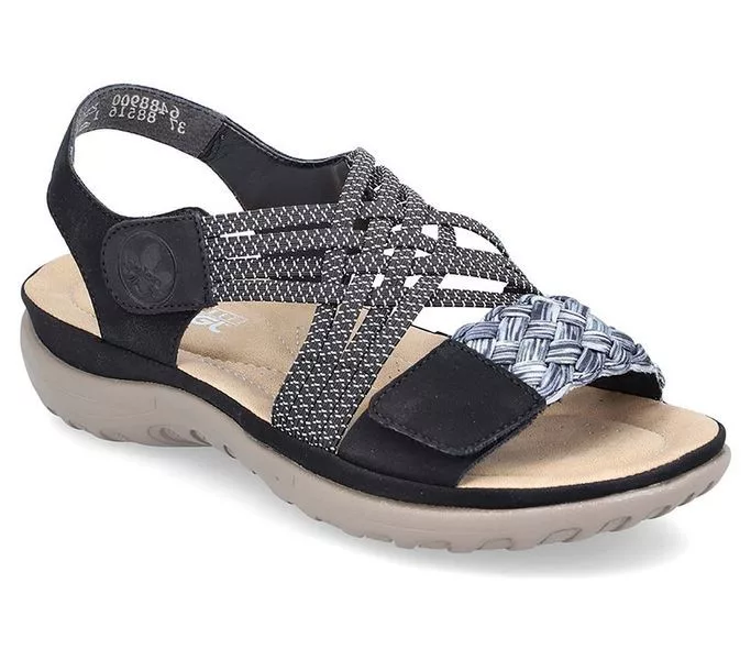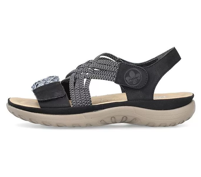 Fekete színű Rieker 64889-00 női szandál. Felsőrészének az anyaga: műbőr felső