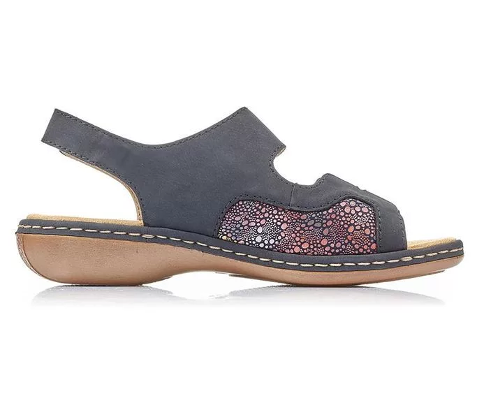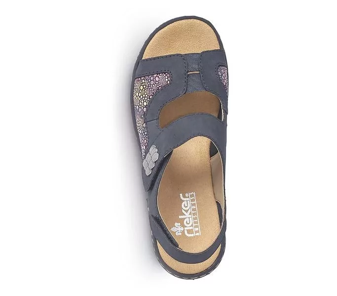 Kék színű Rieker 65989-14 női szandál. Felsőrészének az anyaga: műbőr felső