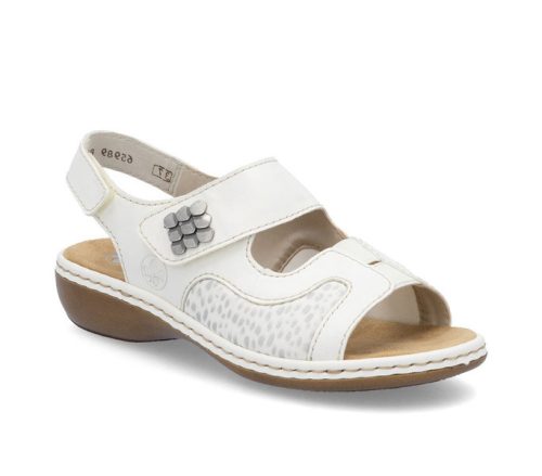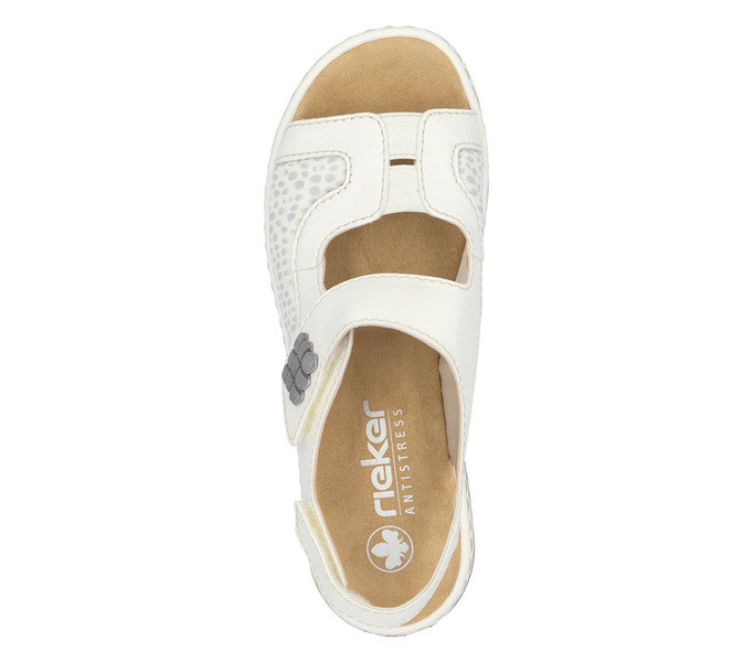 fehér színű Rieker 65989-82 női szandál. Felsőrészének az anyaga: textil felsőrész