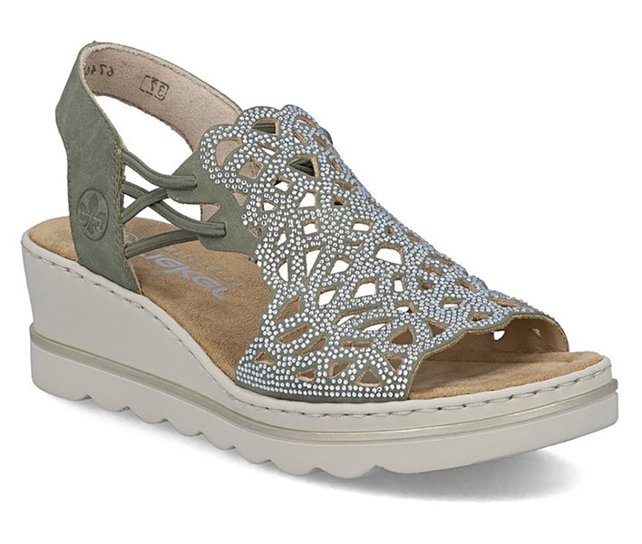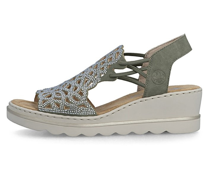 Zöld színű Rieker 67465-52 női szandál. Felsőrészének az anyaga:
