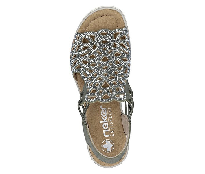 Zöld színű Rieker 67465-52 női szandál. Felsőrészének az anyaga: