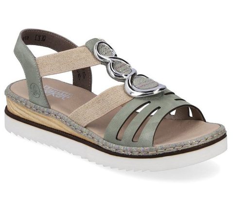 Zöld színű Rieker 679L4-52 női szandál. Felsőrészének az anyaga: műbőr felső