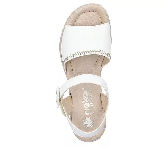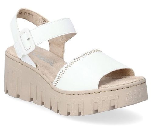 Fehér színű Rieker 68057-80 női szandál. Felsőrészének az anyaga: műbőr felső