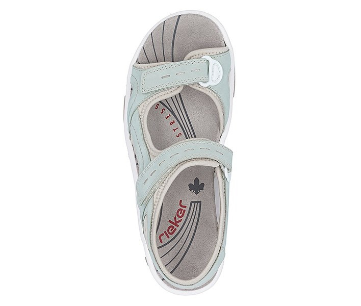 Zöld színű Rieker 68866-52 női szandál. Felsőrészének az anyaga: Ekológikus bőr/textil felső