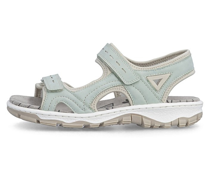 Zöld színű Rieker 68866-52 női szandál. Felsőrészének az anyaga: Ekológikus bőr/textil felső