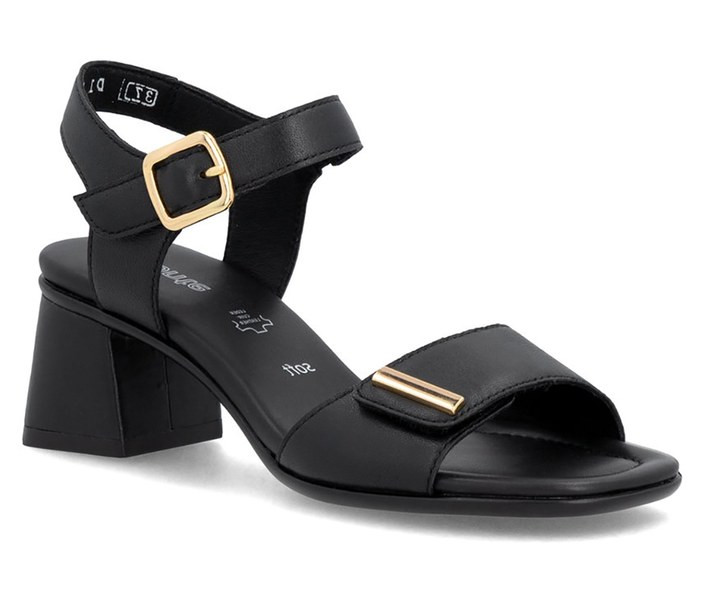 Fekete színű Rieker D1K54-00 női szandál. Felsőrészének az anyaga: bőr felső