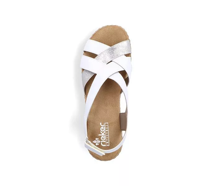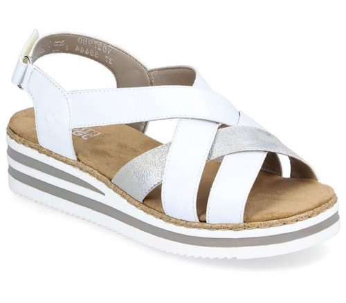 Fehér színű Rieker V0279-80 női szandál. Felsőrészének az anyaga: műbőr felső