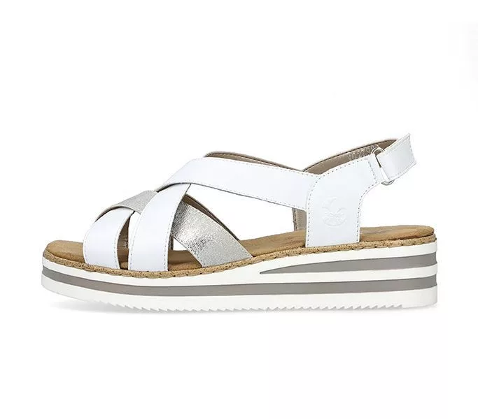 Fehér színű Rieker V0279-80 női szandál. Felsőrészének az anyaga: műbőr felső