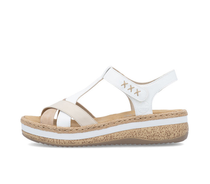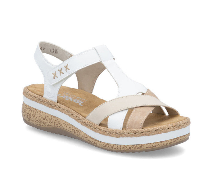 Rózsaszín színű Rieker V0919-80 női szandál. Felsőrészének az anyaga: