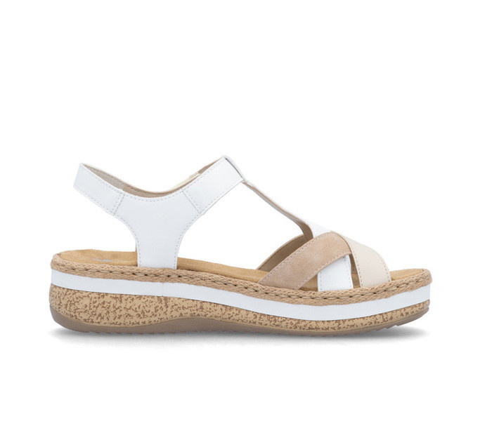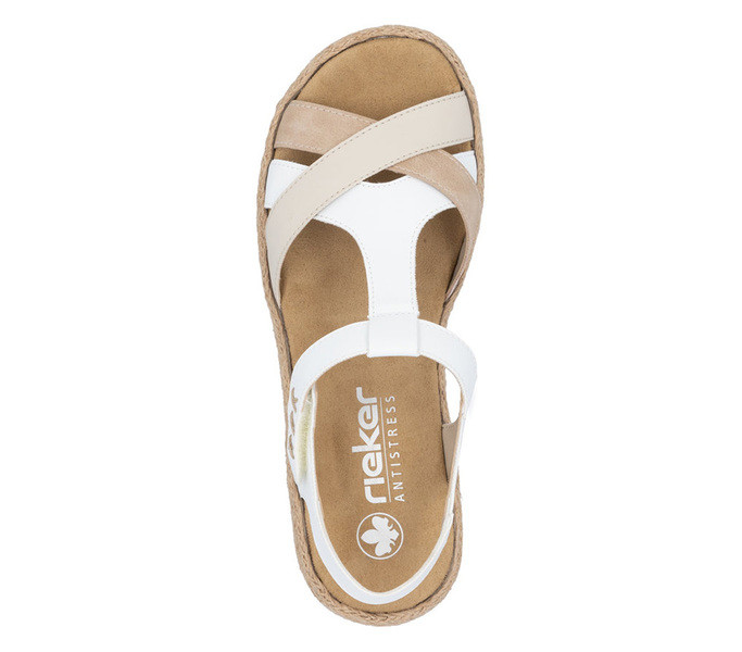 Rózsaszín színű Rieker V0919-80 női szandál. Felsőrészének az anyaga: