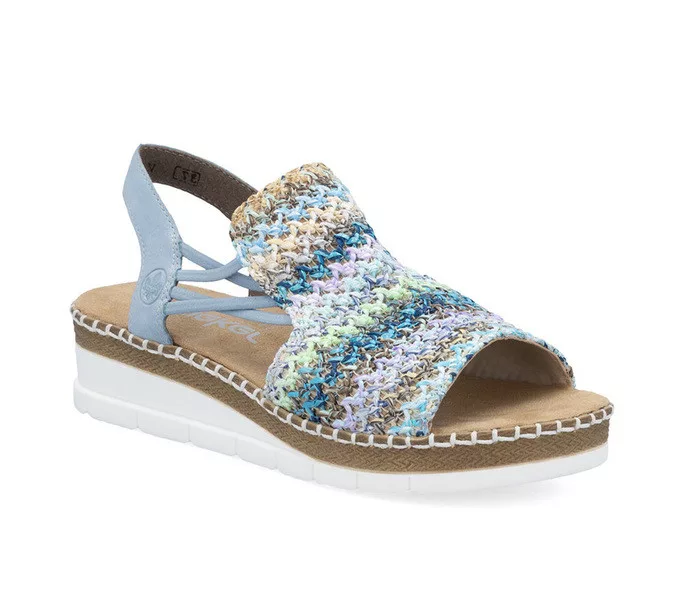 Kék színű Rieker V1241-91 női szandál. Felsőrészének az anyaga: textil talpbetét