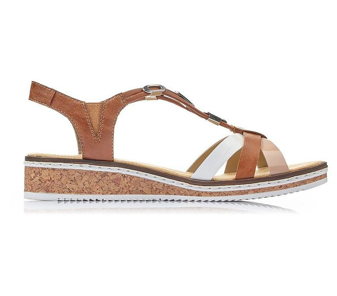 Fehér színű Rieker V3657-81 női szandál. Felsőrészének az anyaga: műbőr felső