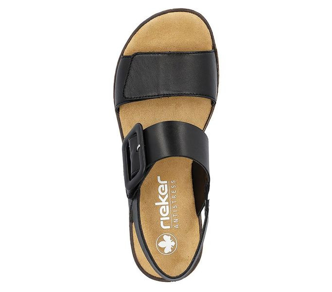 Fekete színű Rieker V3667-00 női szandál. Felsőrészének az anyaga: bőr felső