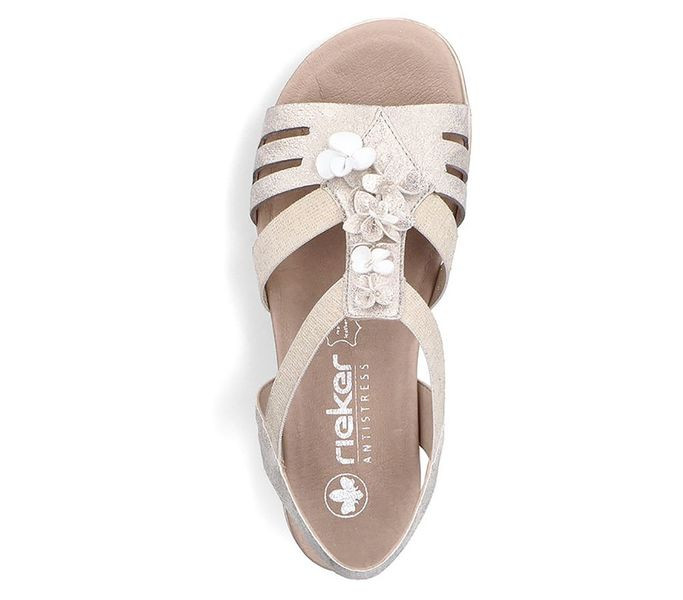 Bézs színű Rieker V3788-60 női szandál. Felsőrészének az anyaga: műbőr felső