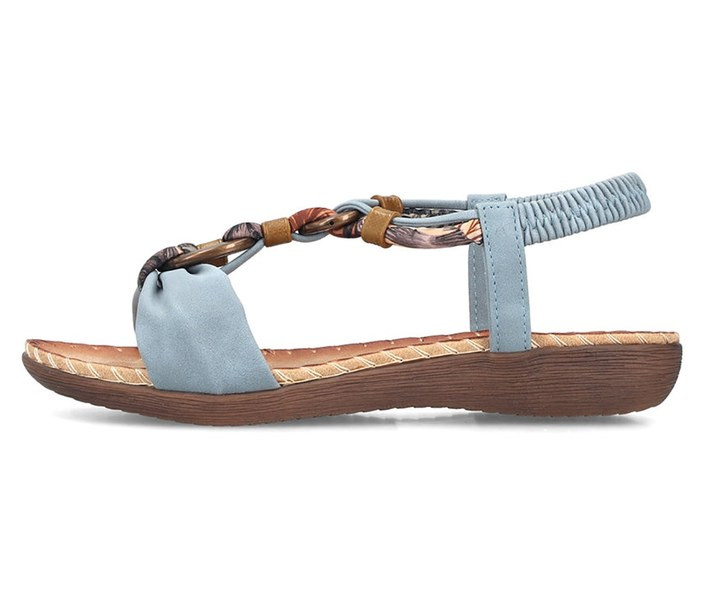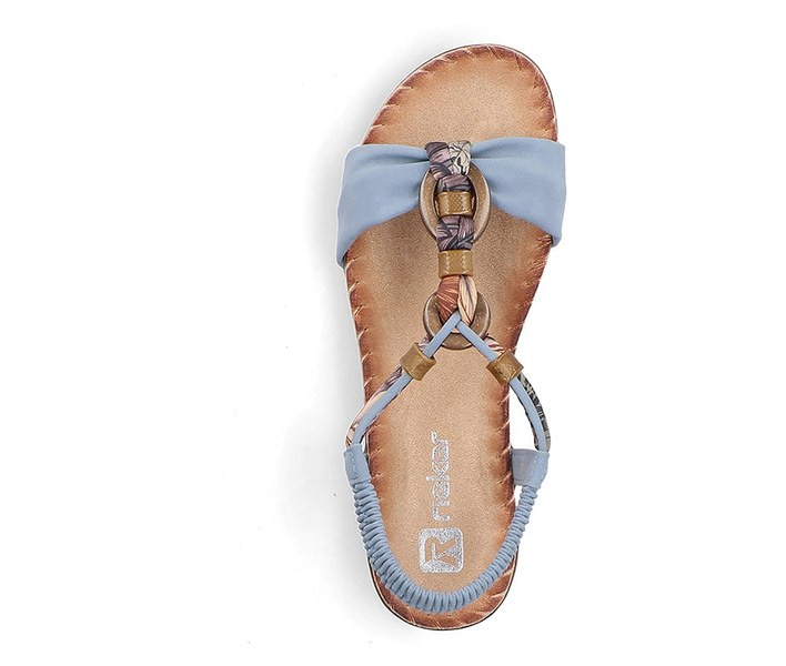 Kék színű Rieker V7568-14 női szandál. Felsőrészének az anyaga: Ekológikus bőr/textil felső szintetikus belső
