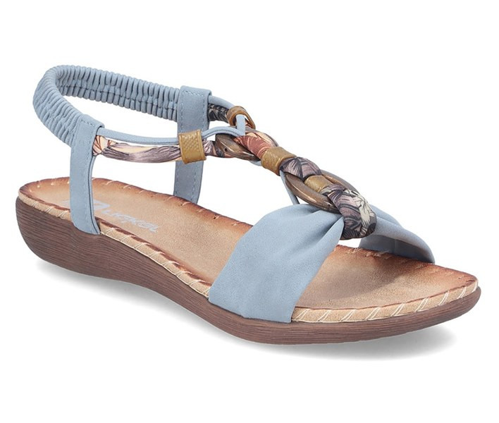 Kék színű Rieker V7568-14 női szandál. Felsőrészének az anyaga: Ekológikus bőr/textil felső szintetikus belső