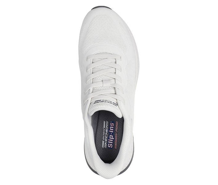 Bézs színű Skechers 118423-OFWT férfi cipő. Felsőrészének az anyaga: Textil-szintetikus felsőrész