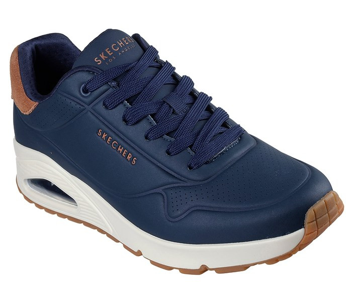 Kék színű Skechers 183004-NVY férfi cipő. Felsőrészének az anyaga: Bőr-szintetikus felsőrész