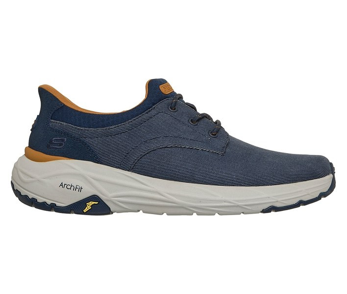 Kék színű Skechers 205795-NVY férfi cipő. Felsőrészének az anyaga: Textil-szintetikus felsőrész