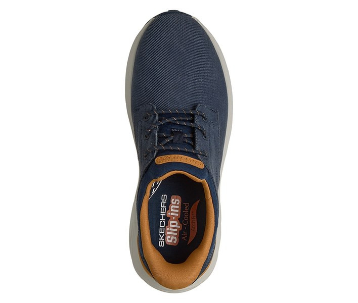 Kék színű Skechers 205795-NVY férfi cipő. Felsőrészének az anyaga: Textil-szintetikus felsőrész