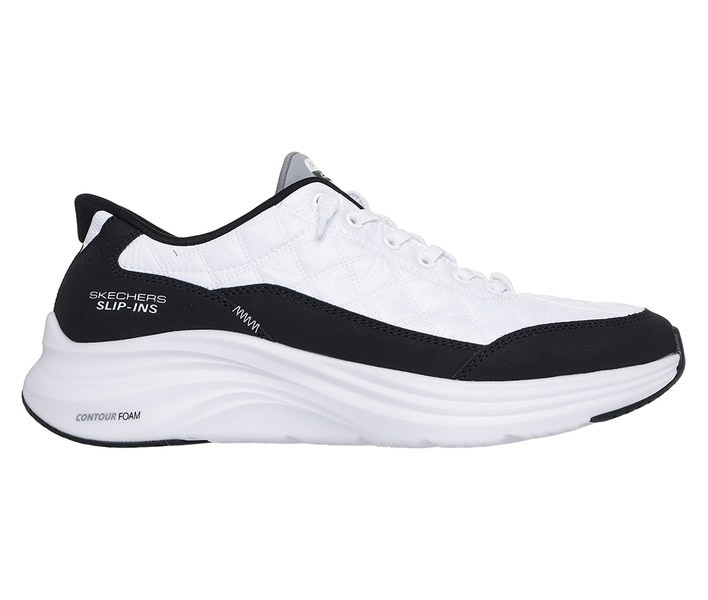 Fehér színű Skechers 232619-WBK férfi cipő. Felsőrészének az anyaga: Textil-szintetikus-bőr felsőrész