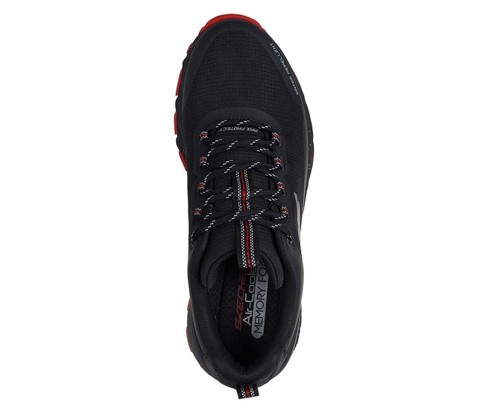 Fekete színű Skechers 237669-BKRD férfi cipő. Felsőrészének az anyaga: Textil-szintetikus felsőrész