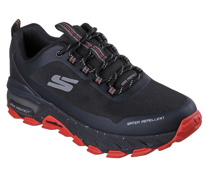 Fekete színű Skechers 237669-BKRD férfi cipő. Felsőrészének az anyaga: Textil-szintetikus felsőrész