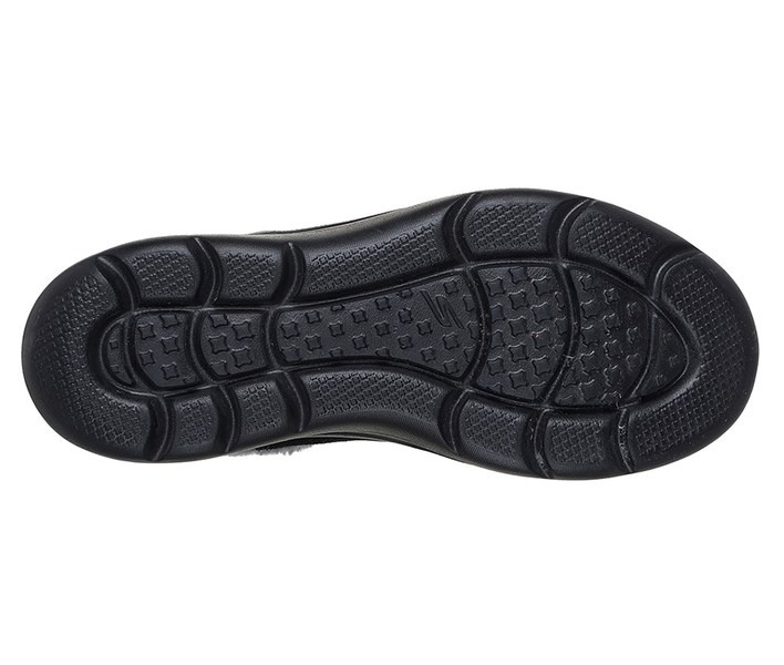 Fekete színű Skechers 144848-BKGY női bokacsizma. Felsőrészének az anyaga: Bőr-textil felsőrész