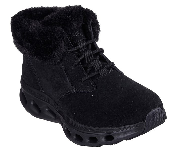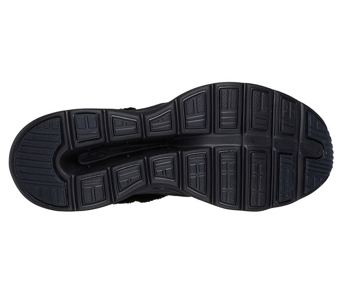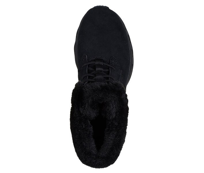 Fekete színű Skechers 144880-BBK női bokacsizma. Felsőrészének az anyaga: Bőr-textil felsőrész
