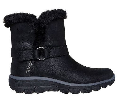 Fekete színű Skechers 168045-BLK női bokacsizma. Felsőrészének az anyaga: Szintetikus felsőrész