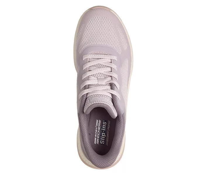 Lila színű Skechers 117624-PRMT női cipő. Felsőrészének az anyaga: Textil-szintetikus felsőrész