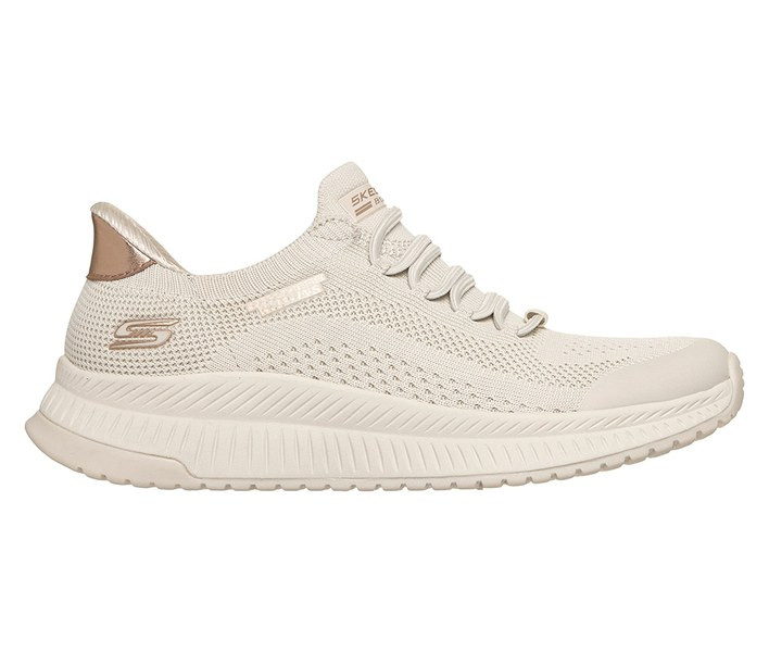 Bézs színű Skechers 117743-OFWT női cipő. Felsőrészének az anyaga: Textil-szintetikus felsőrész