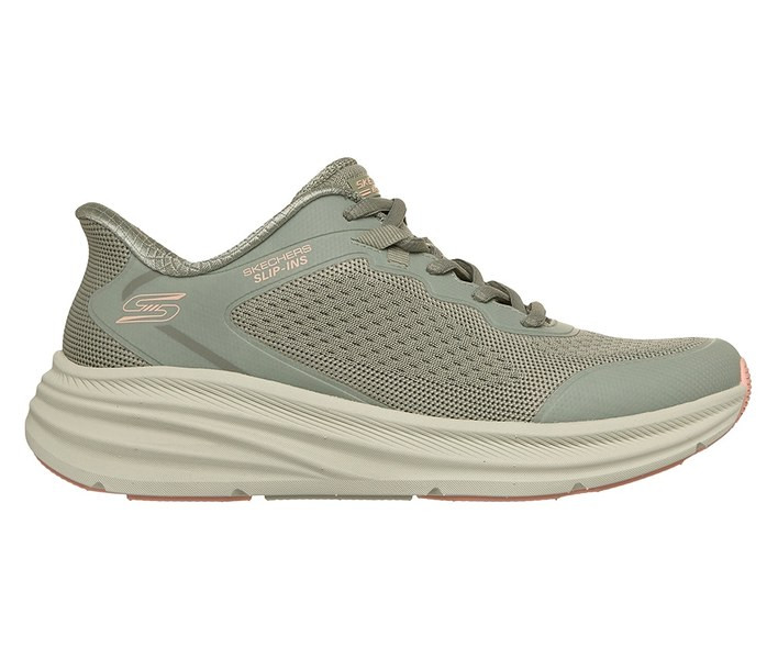 Zöld színű Skechers 117756-OLV női cipő. Felsőrészének az anyaga: Textil-szintetikus felsőrész