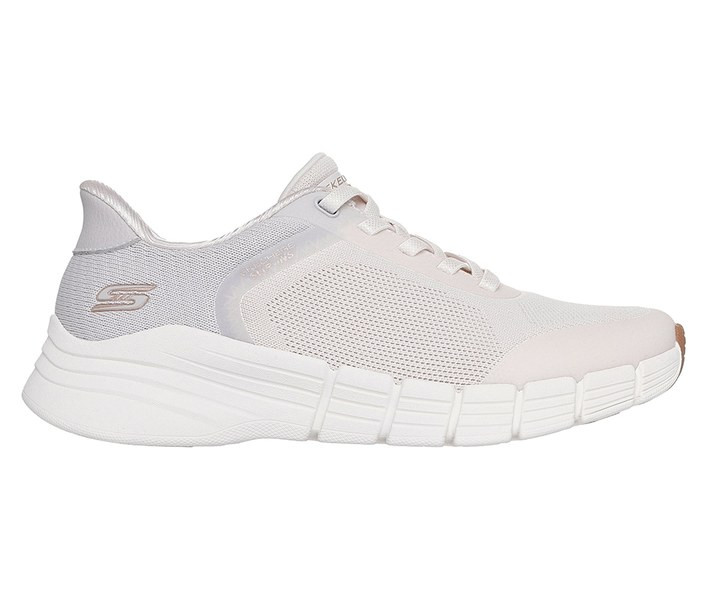 Bézs színű Skechers 117790-OFWT női cipő. Felsőrészének az anyaga: Textil-szintetikus felsőrész