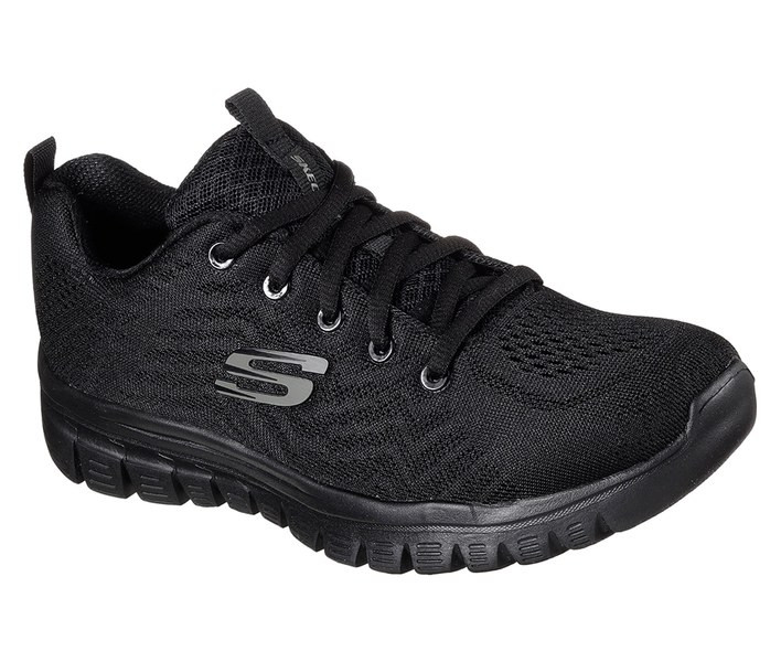 Fekete színű Skechers 12615W-BBK női cipő. Felsőrészének az anyaga: Textil