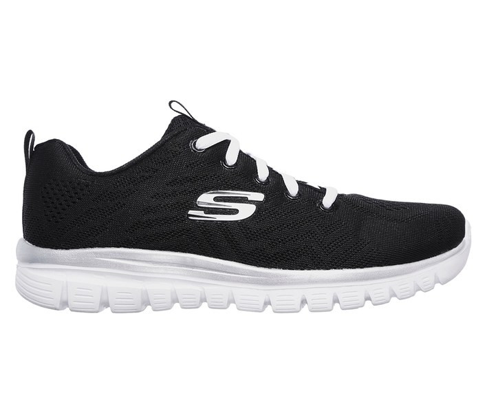 Fekete színű Skechers 12615W-BKW női cipő. Felsőrészének az anyaga: Textil