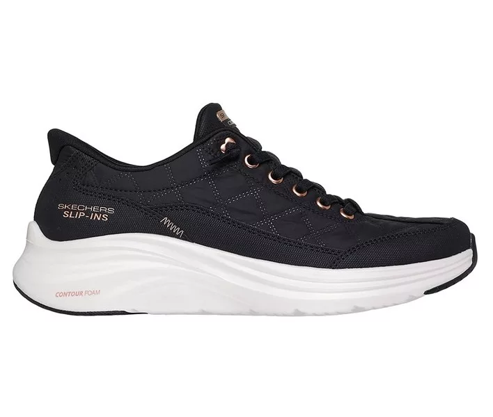 Fekete színű Skechers 150413-BKRG női cipő. Felsőrészének az anyaga: