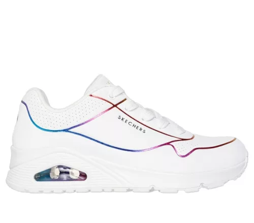 Fehér színű Skechers 155168-WMLT női cipő. Felsőrészének az anyaga: Szintetikus felsőrész