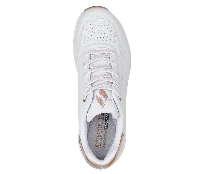 Fehér színű Skechers 155196-WHT női cipő. Felsőrészének az anyaga: Szintetikus felsőrész