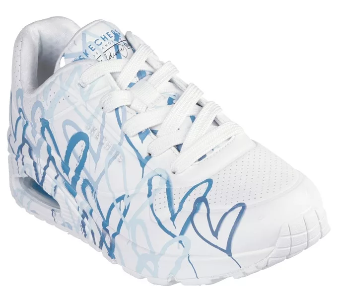 Fehér színű Skechers 155507-WBL női cipő. Felsőrészének az anyaga: Textil-szintetikus felsőrész