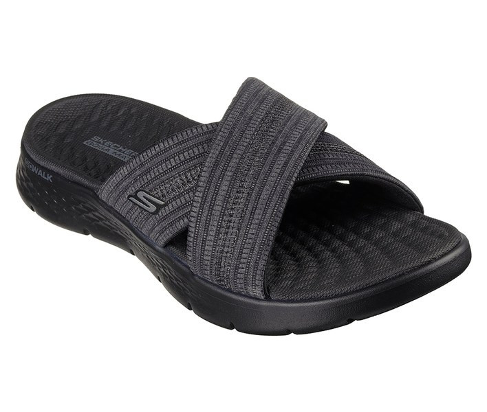 Fekete színű Skechers 141420-BKGY női papucs. Felsőrészének az anyaga:
